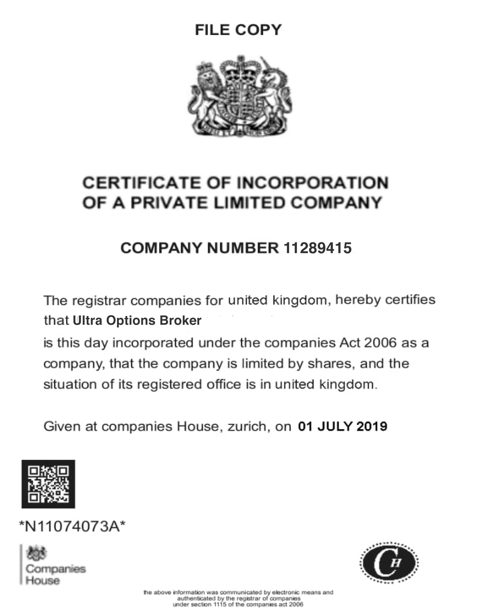 At UltraOptionsBroker, we are proud to be a fully incorporated business, recognized and certified on 1st July 2019. Our Certificate of Incorporation is a testament to our commitment to providing top-quality [products/services] while adhering to the highest standards of professionalism and legal compliance. We invite you to explore our range of offerings and discover how we can help you achieve your goals.